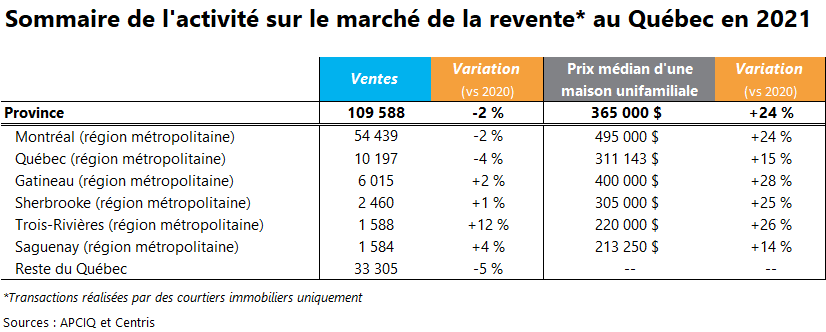À l’instar de la construction résidentielle, le marché de la revente au Québec a connu une année 2021 exceptionnelle.