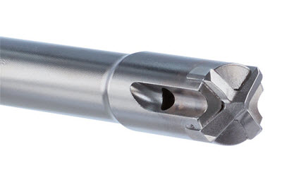 La mèche est dotée de canaux d’aspiration qui recueillent la poussière directement derrière les dents au carbure.
