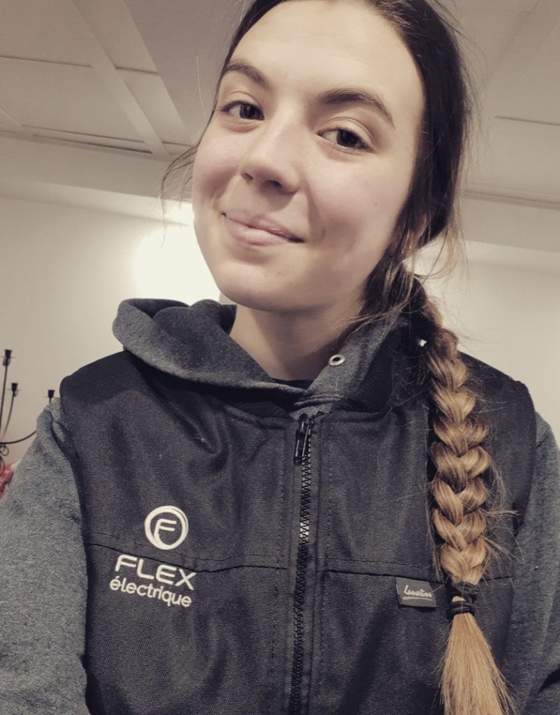 Olivia Gamelin, électricienne, partage avec enthousiasme son parcours professionnel et répond aux questions de la rédaction dans le cadre de la série d’entrevues #construireauféminin.