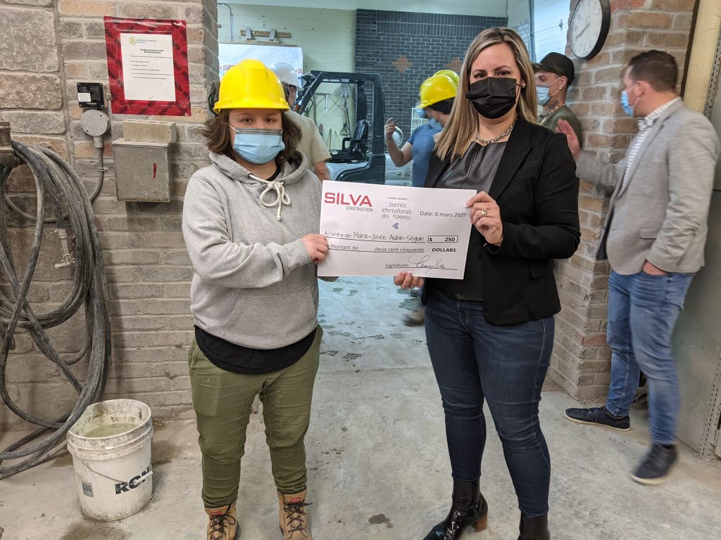 À cette occasion, Karine Silva, vice-présidente chez Silva Construction, a remis des bourses à deux femmes qui poursuivent leurs études respectivement en briquetage-maçonnerie et en charpenterie menuiserie. À titre de partenaire, l’APCHQ, représentée par Pamela Morel, conseillère en relations de travail, a également remis six bourses à des étudiantes en construction afin de les encourager à persévérer et valoriser leur cheminement scolaire.