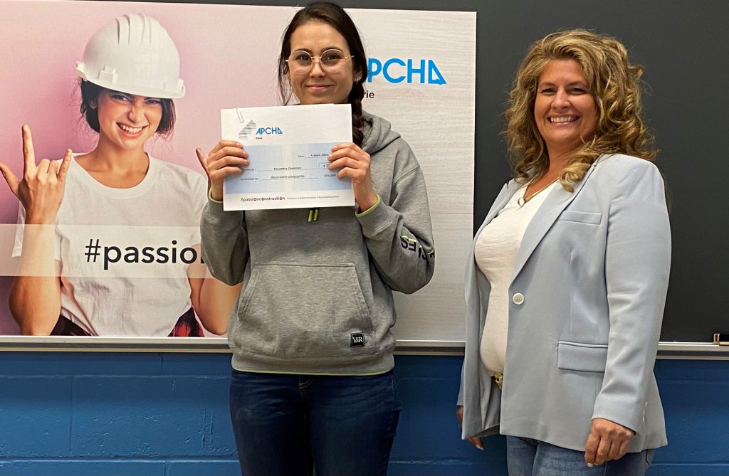 À cette occasion, Caroline Anctil, trésorière au sein du conseil d’administration de l’APCHQ-région de l’Estrie et directrice des opérations chez J. Anctil inc. ainsi que Nicole Côté, ancienne présidente du conseil d’administration de l’APCHQ – région de l’Estrie et coordonnatrice du mentorat à l’APCHQ-région de l’Estrie ont remis des bourses à dix femmes qui poursuivent leurs études au Centre de formation professionnelle 24-Juin, et ce, afin de les encourager à persévérer et à valoriser leur cheminement scolaire.