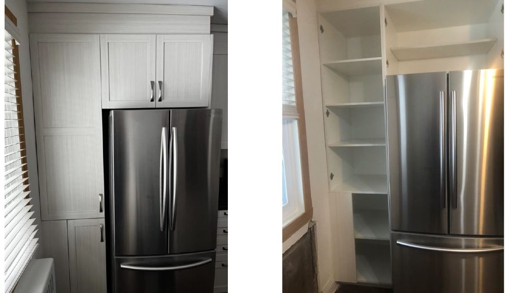 - Certains articles de cuisine ont été relocalisés dans le bâtiment (réfrigérateur et hotte aspirante). D’autres éléments ont été récupérés par des citoyen.ne.s : meubles, îlot central et four à micro-ondes.