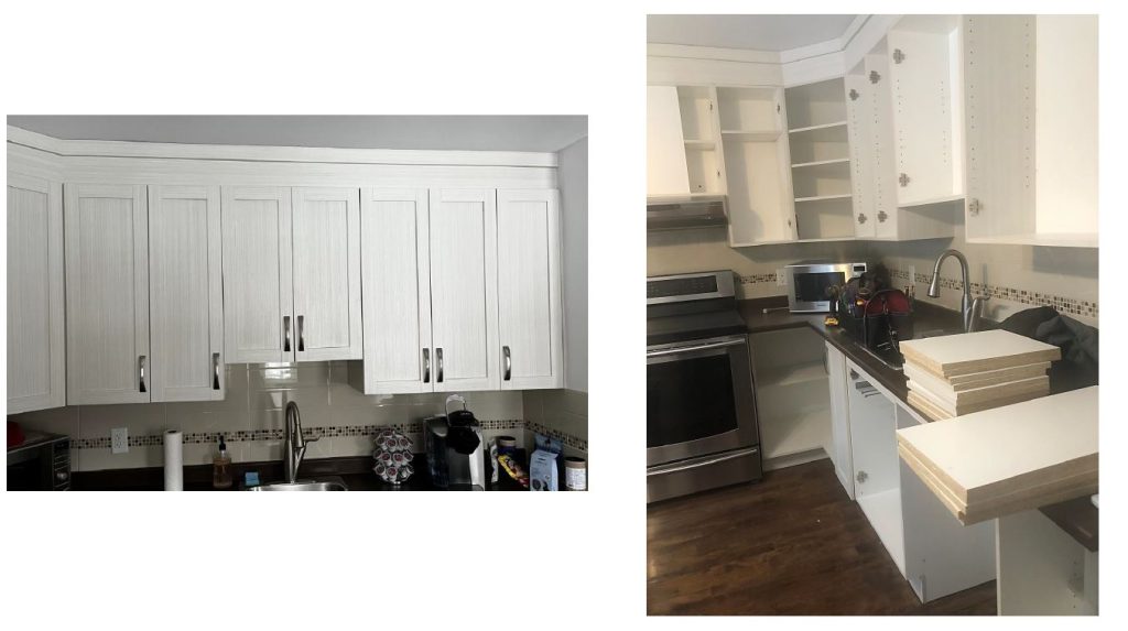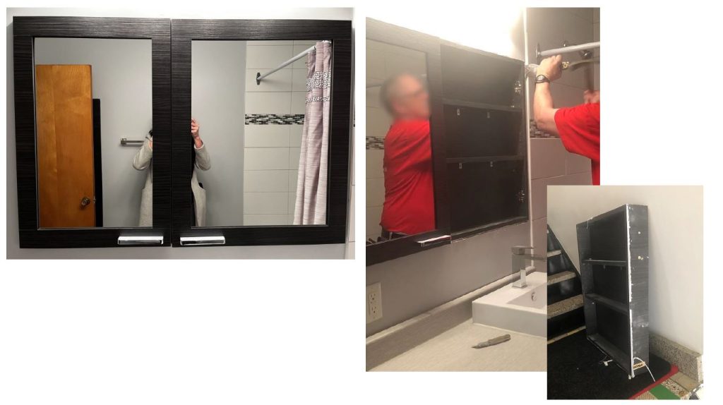 - La déconstruction et le démontage ont été effectués par ESPÉ. À titre d’exemple, le démontage de la salle de bain a nécessité le travail de deux personnes pendant environ 1 heure.