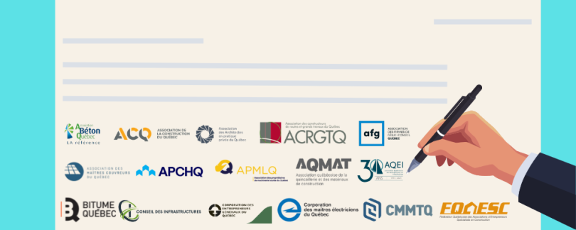 L’AQMAT et 15 autres associations de l’industrie québécoise de la construction ont transmis le 10 février une lettre commune afin d’engager la communication avec le bureau du premier ministre du Québec et de lancer rapidement la collaboration. En voici de larges extraits :