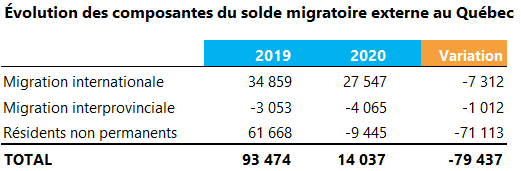 [1] Le solde migratoire externe correspond au solde de la migration internationale, de la migration interprovinciale et des résidents non permanents.