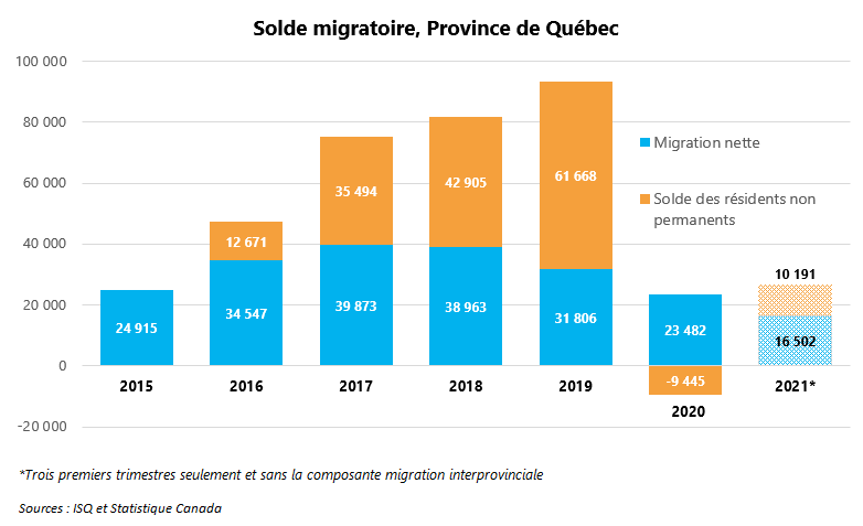 En raison de la pandémie, le solde des résidents non permanents a chuté drastiquement en 2020, mais depuis le deuxième trimestre de 2021, ils sont de retour. Dans un contexte où il y a un manque de main-d’œuvre quasi généralisé au Québec, il faudra attirer encore plus de travailleurs étrangers, ce qui devrait contribuer à maintenir une forte demande pour le locatif au cours des prochaines années.