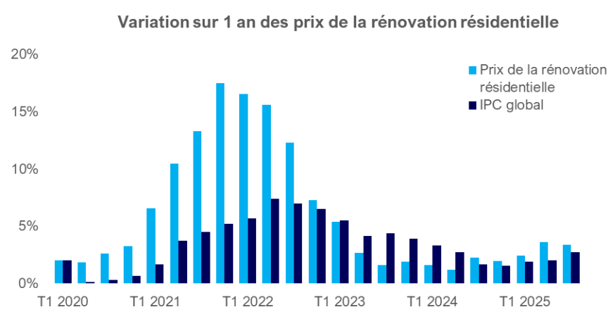 La croissance des coûts de rénovation résidentielle s’est également accélérée en 2025. Au troisième trimestre, une augmentation d’environ 3 % a été observée par rapport à la même période l’année précédente, légèrement supérieure au taux d’inflation globale.