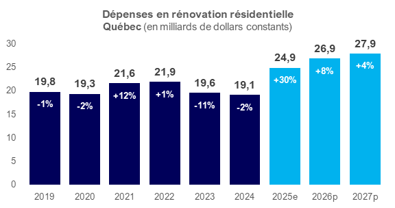 Selon les données diffusées pour 2025, L’APCHQ estime que la croissance des dépenses en rénovation résidentielle a atteint 30 % au Québec.