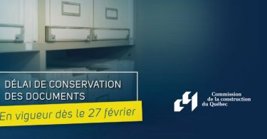 Commission de la construction du Québec • Lois et règlements Nouveau délai de conservation des documents 4 mars 2020par Québec habitation