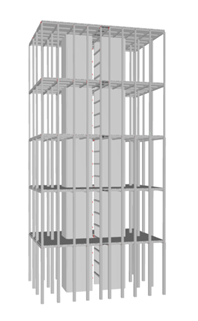 Les étapes 2 à 6 sont similaires pour tous les concepts d’hyperstructures. Elles peuvent différer selon le type de connexion entre les éléments préfabriqués, mais ce sujet n’a pas été étudié dans le cadre de ce projet. L’étape 1, le coulage sur place des noyaux de béton, est un inconvénient majeur pour la vitesse d’érection du bâtiment pour le système en béton. Un temps de construction plus long implique une perte de revenus pour le propriétaire du bâtiment, des frais d’intérêt plus élevés et plus de perturbations pour la localité et les entreprises voisines. (R. Mark Lawson et al., 2012).