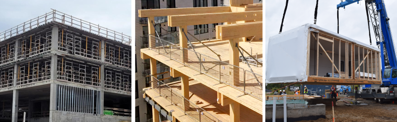 Le développement de la chaîne de valeur et les avantages environnementaux du bois expliquent en partie le retour en force de ce matériau. La préfabrication gagne également du terrain sur ces marchés, puisqu’elle permet notamment de raccourcir les échéanciers de projets et de mieux contrôler la qualité. Pour construire en bois et de façon préfabriquée, il est toutefois préférable de concevoir dès le départ en fonction des contraintes et avantages spécifiques à ce matériau et à ce mode constructif afin de maximiser les bénéfices de ces pratiques.