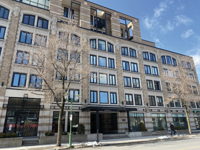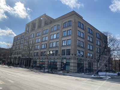 À Outremont, ce bâtiment de six étages qui abrite aujourd’hui des commerces au rez-de-chaussée, des bureaux au deuxième et au troisième étage et des unités d’habitation aux trois derniers niveaux, a été construit en 1924 et occupait à cette époque un garage de cinq étages.