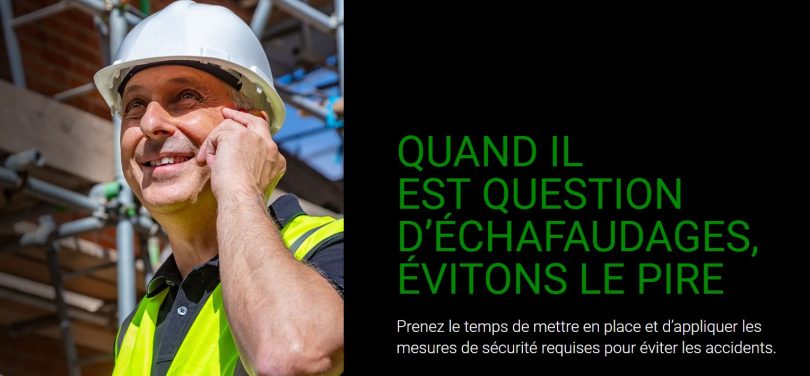 Entre 2017 et 2021, près de 1 000 accidents du travail impliquant un échafaudage se sont produits au Québec, dont plus de la moitié sur des chantiers de construction. Pour mettre en lumière ce risque majeur qui peut causer de graves blessures, la paralysie ou même la mort, la Commission des normes, de l’équité, de la santé et de la sécurité du travail (CNESST) a lancé plus tôt cette semaine une nouvelle campagne de sensibilisation et d’information sur les échafaudages et les dangers reliés à leur utilisation.