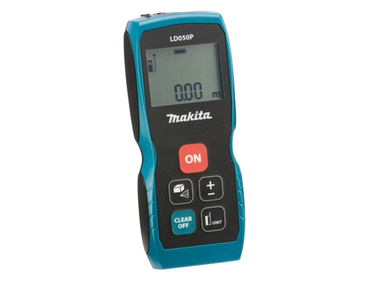 Le mesureur modèle nº LD050P de Makita permet d’additionner et de soustraire des mesures, d’établir une mesure minimum et maximum, ou encore d’utiliser la formule de Pythagore pour trouver des dimensions qui ne peuvent être mesurées directement.
